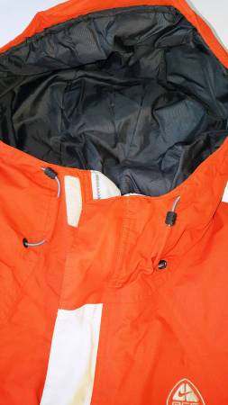 . Nike All Conditions Gear (ACG) 3 Outer Layer Hood Windbreaker Jacket lightly worn, pre-owned condition Adult XL Burnt Orange/Grey perfect for snowboarding/skiing : built-in powder skirt great...