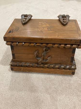 Chest appears to be hand made. It’s in great condition. The measurements are: 11” in height, 11” in width, and 17” in length. Asking $45.00