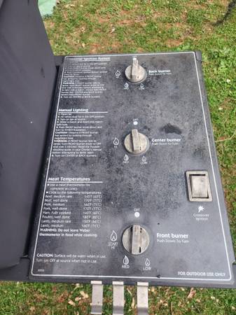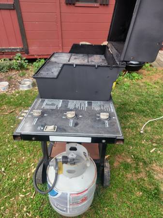 Weber grill with full propane tank Center, front and back burner Crossover ignition system Manual lighting Crossover ignition Previously used Please call Delivery available