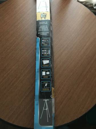 Quartet 38 - 66 inch display easel, brand new in the box, made of aluminum construction and will support 20 pounds.