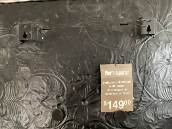 Large Beautiful floral stamped metal wall hanging from Pier One Imports. Retails $149 Approximately 28” square