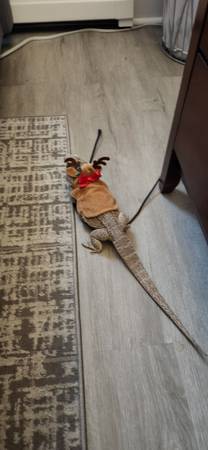 I also have 6 outfits and a leash for a bearded dragon.$75 for tank and outfits also included about 50 to 75 superworms.