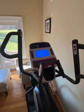 Lightly used top-of-the-line elliptical with large display console. Built-in cooling fan. Power adjustable incline for additional resistance. Includes stationary handles with heart rate monitor....