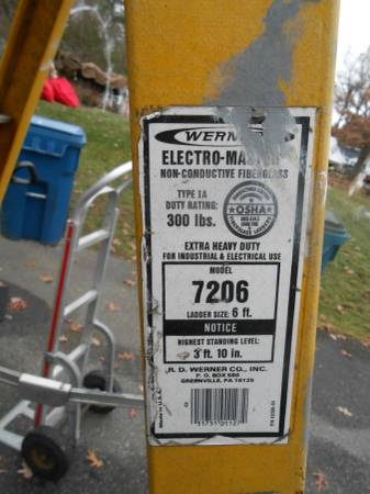 I have a 6' Werner fiberglass step ladder, max 300 LB.