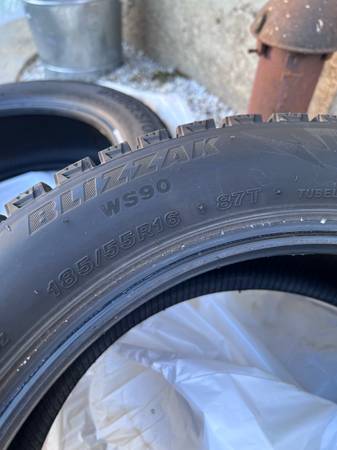 (4) 16” Bridgestone Blizzak WS90 snow tires Size 185/55R16 Perfect, Like-New condition Lightly used for one winter season only and have less than 2,000 miles on them Stored in basement, then garage....