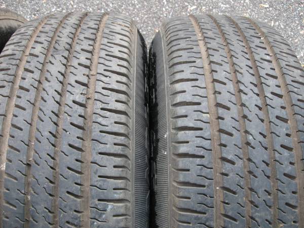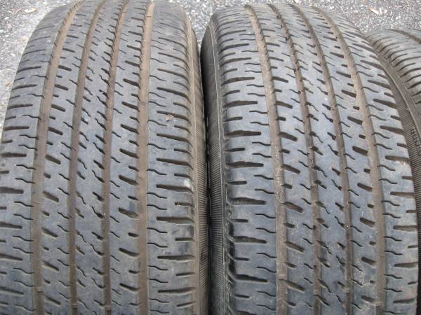 The tires have excellent tread on them. There are some tread cracks. I removed the 2 wheels so it's just the 4 tire set now. 225 75 15
