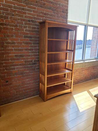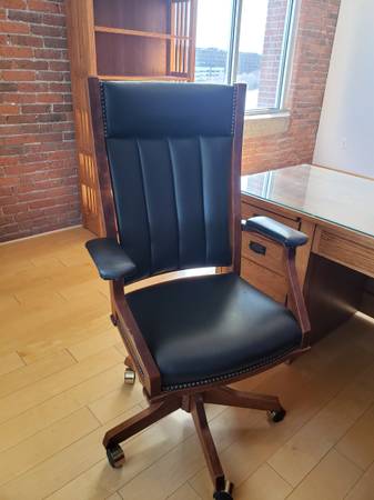 Beautiful Executive Desk, 2 Book Cases, Leather Desk Chair and 2 Side Chairs. Made in the Amish country...solid oak. Very good condition; non-smoking environment.