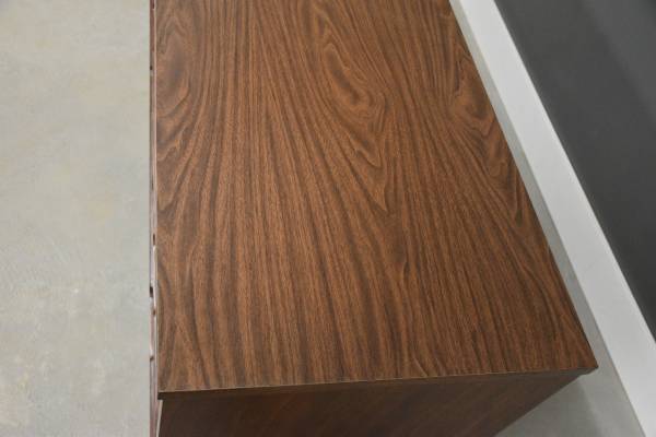 A mid century modern walnut dresser with a scratch resistant formica top. Professionally refinished. Made in USA. Circa 1960’s. 72.125” wide. 18.25” deep. 30.375” tall. Delivery available ☺️