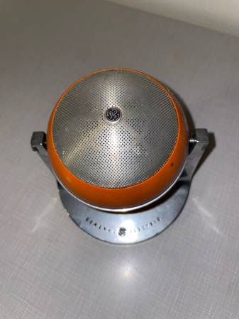 The Orbiter was one of several radios released by General Electric in 1972 under “The Designer Series.” The Orbiter is a solid radio with a heavily weighted base that allowed the radio to balance itself with the speaker always pointing up. It can also be mounted on the wall. In working order , nice clear and loud .