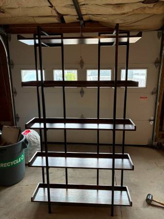 Sturdy metal frame bookshelf with five shelves (not adjustable). Like new. $65. Dimensions: 41-1/2”W x 11-3/4”D x 72”H.