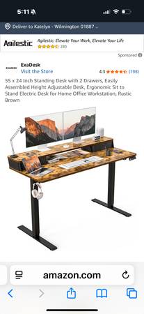 Like new - fully assembled - 55 x 24 Inch Height Adjustable Desk with 2 Drawers. Sells on Amazon for $180.