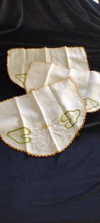 3 - 3 piece sets of Linen with Embroidery Headrests and Armrest Covers = $15.00 each 3 piece set or $35.00 for entire 9 pieces