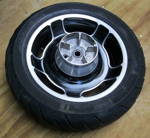 This is a stock, gloss black, 2009-2013 Harley Davidson, Cush Drive, Airstrike, Touring, Street Glide/Road Glide 16" rear mag wheel with an excellent Dunlop 180/65B 16 Black Wall tire and good 25mm wheel bearings. $200.00 / Please call this Google phone number I use to screen my reply's, (Too many scammers) I'll call you back soon. Please Call 978-294 984eight after 10:00 a.m. I don't text so, Include a phone number with your reply if you want me to reply back to you, Thanks for looking.