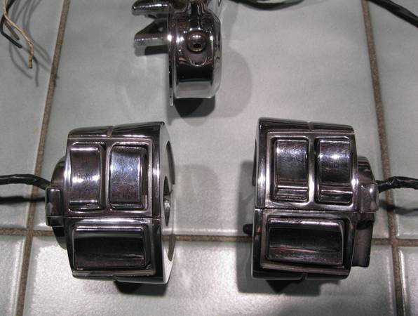 These are Genuine Harley Davidson, FXR, handlebar switch housings, rectangle style switches. (square corners) Harley Davidson kit #70218-87A / Clutch perch is included, the switch housing part #'s are 71564-82A, 71563-82, 71567-82 &71568-82A. $150.00 for all. / Please call this Google phone number I use to screen my reply's, (Too many scammers) I'll call you back soon. Please Call 978-294 984eight after 10:00 a.m. I don't text so, Include a phone number with your reply if you want me to reply back to you, Thanks for looking.