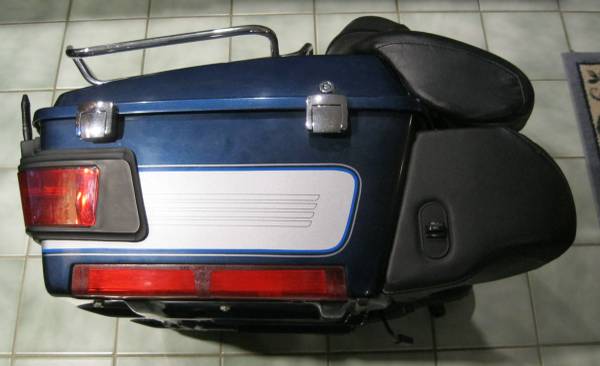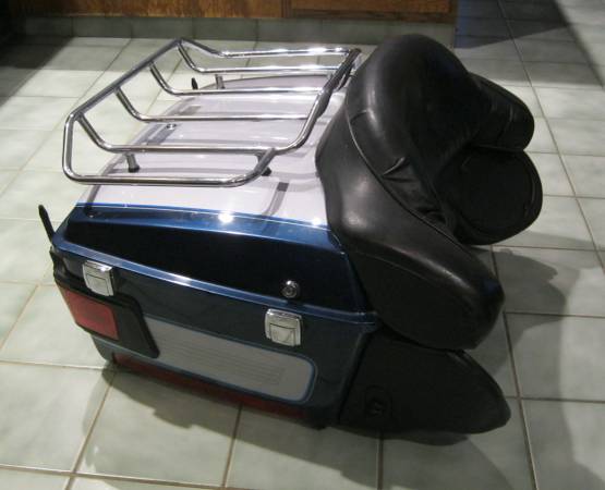 This is like new, from a 2008 Harley Davidson Road Glide. A beautiful, full size, Dark Blue Pearl, Tour Pac, with a chrome Premium Luggage Rack, speaker package with audio controls, full size passenger backrest, soft molded liner and side light package. (Call for price.) Please call this Google phone number I use to screen my reply's, (Too many scammers) I'll call you back soon. Please Call 978-294 984eight after 10:00 a.m. I don't text so, Include a phone number with your reply if you want me to reply back to you, Thanks for looking.