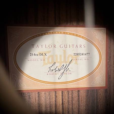 Here we have a 2022 Taylor 214ce DLX acoustic-electric guitar in like new condition, complete with the original Taylor factory hardshell case. This is a modern, great-playing Taylor with excellent tone, balance, and build quality. I can accept all forms of online payments including ones that allow you to use a credit card as well as offer multi payment/financing options. Cash is of course welcome as well, and reasonably priced shipping is available.