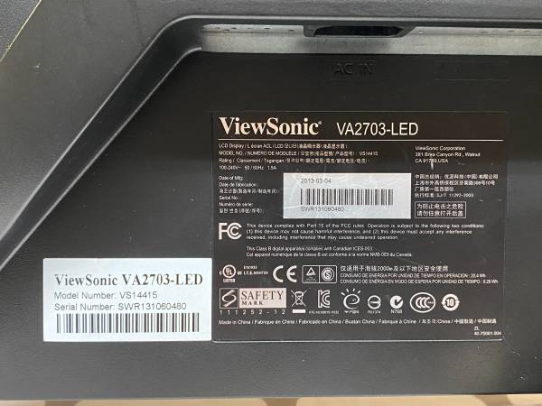 One used Dell 24-inch monitor (E2416Hb), still in good condition, INCLUDING power and VGA Cables, $40 One used ViewSonic 27-inch monitor (VA2703-LED), still in good condition, INCLUDING power and...