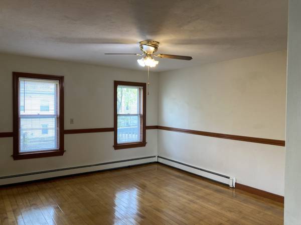 Spacious Liv Rm, hdwd flrs, chair rail, ceiling fan (picture is a replica of this unit liv. rm)