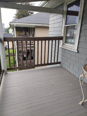 Hardwood floors throughout, fully aplicanced kitchen with gas stove, dishwasher and microwave oven Big living room, two big bedrooms with walk in closet, full bath, back deck. On site laundry and basement storage.