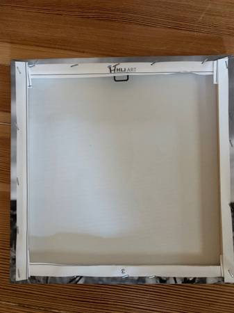 4 piece canvas wall art, each measuring 1 ft x 1 ft, hooks attached