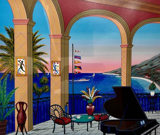 Fanch Ledan “Terrasse au Piano” signed serigraph - $450 (Duxbury, MA)