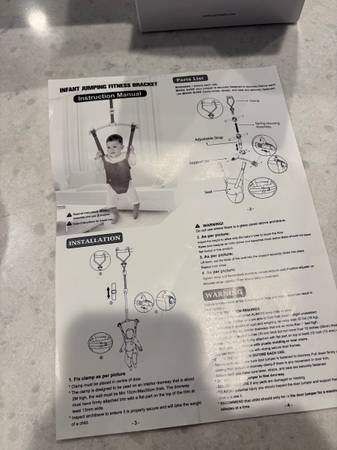 Clamps over doorframe Adjustable height Comes with instructions From Amazon For children about 6mos+ and no more than 35 lbs