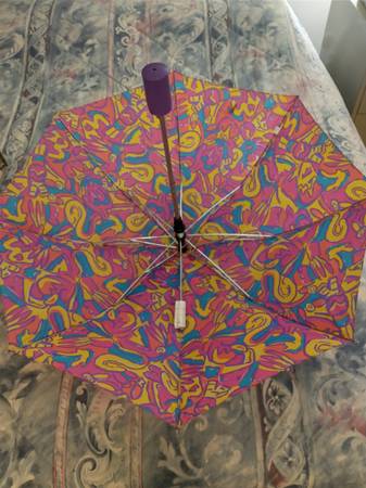 Chromatics push button umbrella. Automatically opens using the button on the handle. Multicolored.