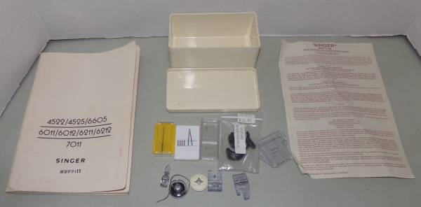 Singer Sewing Machine #4525 with Storage Case Pedal Manual Accessories Good condition, some yellowing on the machine. $100.00 cash pick up only. Yes, it is available. Please call or text, no emails.