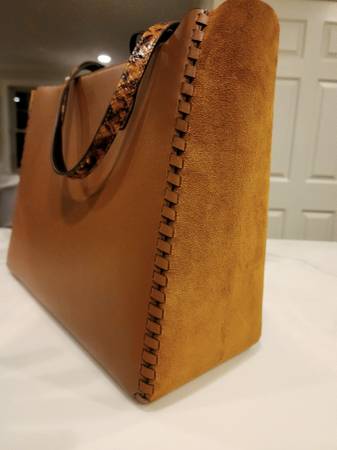 Great Holiday Gift! This chic, gorgeous mixed materials handbag works for any season! Goes with everything! Don't be basic with the generic plain Tory Burch tote everyone has, instead stand out with this gorgeous rare Tory Burch handbag, that's still understated and classy, yet unique with the rich combinations of mixed leather materials.