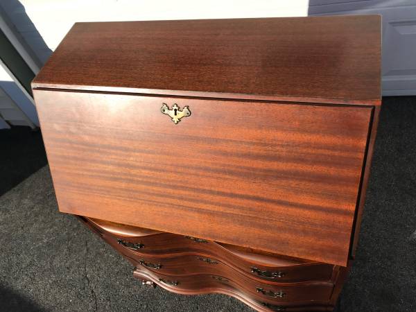 For sale this beautiful Maddox Governor Winthrop mahogany desk. This is a smaller version of this desk as most are 36” wide or larger, but has all the same features. Overall in excellent condition and it has beautiful ball and claw feet. The interior has all the pieces and is in equally good condition. Maddox is a great name and this is a very nice desk. Measures 31 x 17 1/2 x 40”.