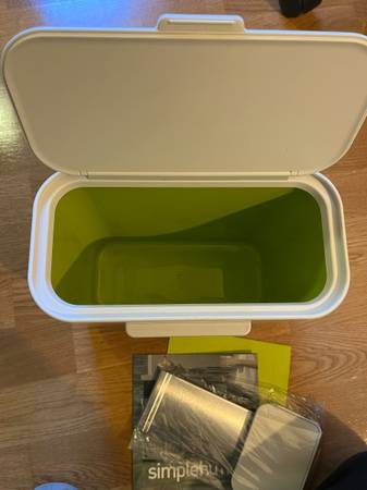 Never used SimpleHuman Compost Caddy in white. Comes with everything you see in the pictures. Does not come with any compost bags. Hold 4 litres. List price is over $60. Here is the description from the website:
