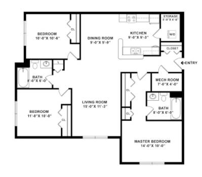 This three bedroom two bathroom apartment features a fully equipped kitchen, entry closet, utility room with washer/dryer, linen closet, and a master suite!