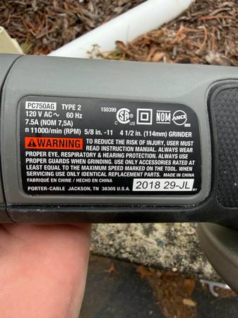 PORTER-CABLE Angle Grinder Tool, 4-1/2-Inch, 7.5-Amp (PC750AG) Comes with new backing pad as well Pick up Hanson, MA
