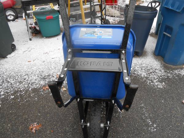 I have a new Kobalt 6 cu. ft. metal wheelbarrow, flat free tire, maximum support bracing & foot stabilizing, steel handles with comfort grip. BO $129.99 at Lowes.